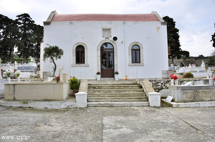 Τώρα, αρχιτεκτονικά,ο ναός του κοιμητηρίου αποτελεί ένα δείγμα εκκλησιαστικό της νεοκλασικής περιόδου, ενταγμένο αρμονικά σ΄ ένα εξίσου αρμονικά διαμορφωμένο κοιμητήριο, που περιλαμβάνει αξιόλογα ταφικά μνημεία , που αντανακλούν τις κοινωνικοοικονομικές συνθήκες του οικισμού το α΄μισό του 20ού αιώνα κυρίως.