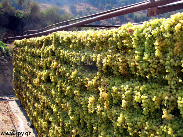 Μόλις γέμιζαν όλα τα τζιγκάκια με σταφύλια τα αλουσούδιαζε ο ποιο δυνατός, δηλαδή ο πατέρας μου και τα απλώναμε, ύστερα πάλι το ίδιο, ξανά και ξανά, ώσπου να γεμίσει ο οψιγιάς. Άμα γέμιζε και υπήρχαν ακόμα σταφύλια, τα απλώναμε κάτω στον διπλανό χαμωτό οψιγιά.