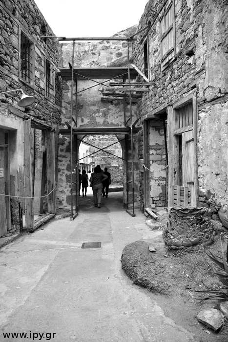 «Ο ασβέστης απούσιαζε εντελώς από τα σπίτια και τις προσόψεις και στο άθλιο δρομάκι έπρεπε να έχεις πάντα την προσοχή σου τεταμένη για να μην γλιστρήσεις. Έβλεπες παντού ερείπια, μια πόλις ρημαγμένη. Παντού μονόροφα και διόροφα σπίτια χωρίς στέγες και πατώματα, τοίχοι μισογκρεμισμένοι, γωνίες που έστεκαν, πόρτες και παράθυρα δυόροφων σπιτιών φανέρωναν την ερήμωσιν και την εγκατάλειψιν» (Ρεμουντάκης’ 1973: 126).