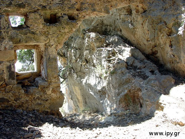 Σήμερα σώζονται σχετικά σε “καλή κατάσταση” δύο χτίσματα, το ένα αποτελείται από έναν οχυρωματικό τοίχο, εσωτερικό υπαίθριο χώρο και μια κάμερα χτισμένη μέσα στο βράχο, το άλλο βρίσκεται λίγα μέτρα νότια, μάλλον ήταν η δεξαμενή όπου συγκέντρωναν νερό, το οποίο έβγαινε όπως φαίνεται από μια μεγάλη τρύπα στο βράχο, σήμερα όμως έχει στερέψει.