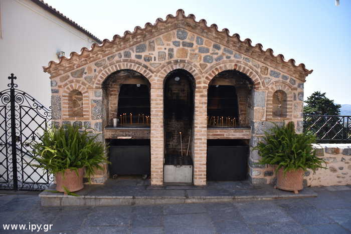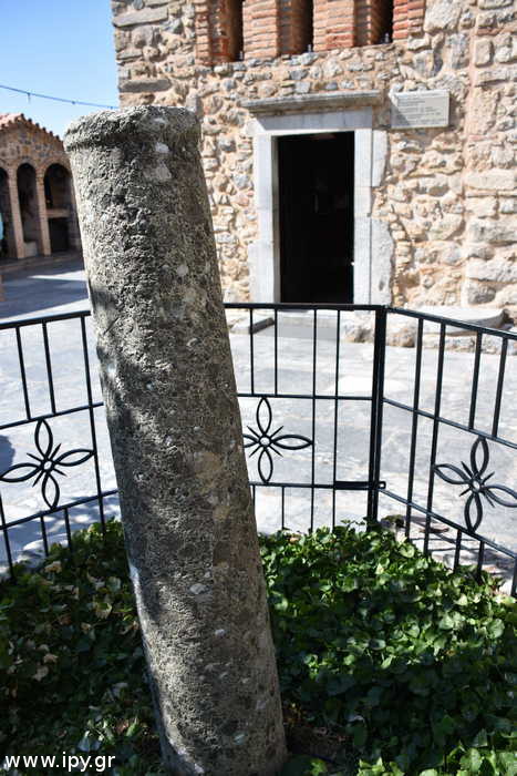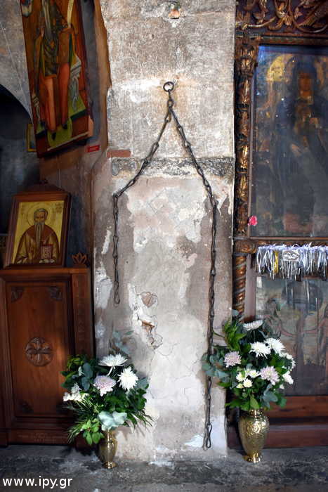 Η αλυσίδα βρίσκεται εντός του καθολικού της μονής, με τους πιστούς να ζώνονται με αυτή προσδοκώντας σε ίαση και ευλογία, ενώ η κολόνα βρίσκεται μπροστά από την νότια είσοδο του καθολικού της μονής. Κατά την επιστροφή της σταμάτησε λίγο πιο κάτω από τη μονή, όπου και αποτυπώθηκε η μορφή της πάνω σε υψηλό βράχο σε σημείο που ποτέ δεν βρέχεται, όπως λένε οι ντόπιοι. Στη θέση αυτή που ονομάστηκε Αποτύπωση, τα νεώτερα χρόνια, ανεγέρθηκε μικρός ναός αφιερωμένος στη Ζωοδόχο Πηγή.
