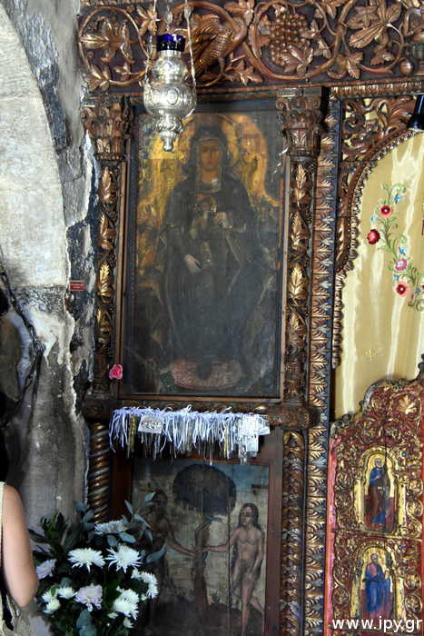 Μετά την κλοπή της θαυματουργής εικόνας το 1498 και την μεταφορά της στην Ιταλία από ένα πλούσιο Έλληνα οινέμπορο, ήδη από το γύρισμα του 15ου αιώνα, πιθανόν κατασκευάστηκε κάποιο αντίγραφο της το οποίο το οποίο όμως δεν διασώθηκε, αφού οι εικόνες που βρίσκονται σήμερα στη μονή είναι αρκετά μεταγενέστερες.Η σημερινή θαυματουργή εικόνα της μονής που φέρει την προσωνυμία Η ΚΥΡΊΑ Η ΚΑΡΔΙΌΤΙCΑ αποτελεί έργο του 1792. Η παράδοση αναφέρει ότι οι Τούρκοι μετέφεραν αυτή την εικόνα στην Κωνσταντινούπολη από όπου ξαναγύρισε στη μονή.Αυτό επαναλήφθηκε τρεις φορές και μάλιστα την τρίτη η εικόνα επέστρεψε στο μοναστήρι μαζί με την αλυσίδα και την κολόνα πάνω στην οποία την είχαν δέσει.
