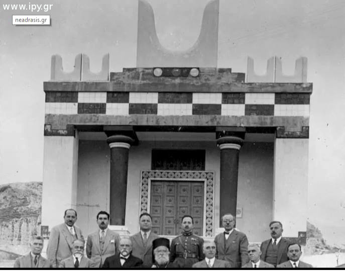Στη φωτογραφία η επιτροπή των εγκαινίων. Τρίτος από τους καθημένους αριστερά ο Νομάρχης Εμμ.Γ.Λυδάκης με καταγωγή από τις Αρχάνες. Δίπλα του ο μητροπολίτης Κρήτης Τίτος Ζωγραφίδης.