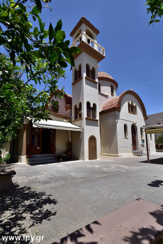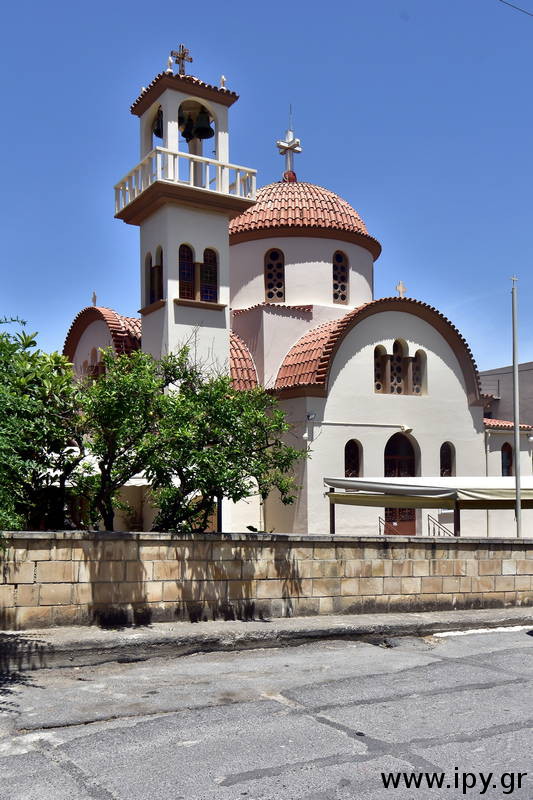 Μετά από διακοπή των εργασιών κατά τη διάρκεια της Γερμανικής κατοχής 1941-1944, ολοκληρώθηκε η ανέγερση του πρώτου αυτού Ναού το 1945, έτος κατά το οποίο ιδρύεται και η Ενορία (6-8-1945 επί Αρχιερατείας του Κρήτης Βασιλείου. Το 1946 εγκαθίσταται στην νεοϊδρυθείσα Ενορία ως πρώτος Εφημέριος ο Αρχιμανδρίτης Θεοφύλακτος Σμυρνιωτάκης.