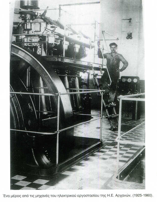 61Η Ηλεκτρική Εταιρεία Αρχανών ιδρύθηκε το 1925 με σκοπό τον ηλεκτροφωτισμό των οδών, πλατειών, οικιών και καταστημάτων της κωμόπολης επί πληρωμή. Μια εταιρεία φιλόδοξη και πρωτοποριακή, που – για δεκαετίες- πρόσφερε πολλά στην πολιτιστική αναβάθμιση των Αρχανών.