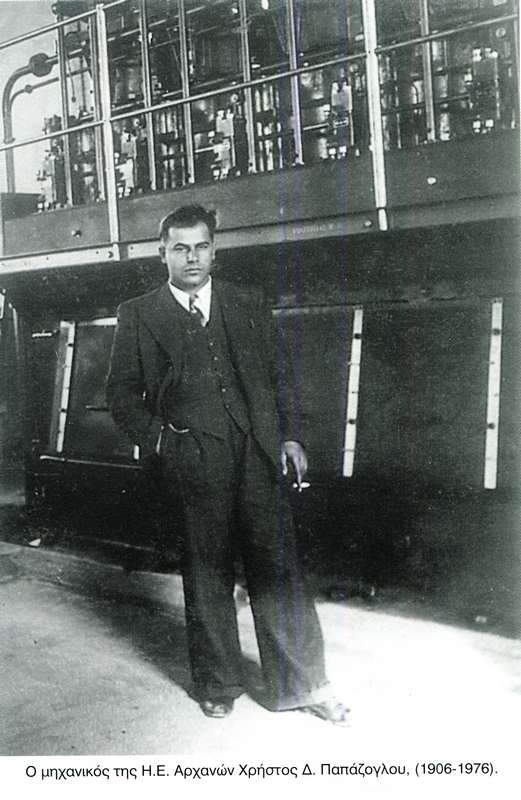 Το 1944, τα μέλη της Ηλεκτρικής Εταιρείας Αρχανών υπογράφουν με τον Χρήστο Παπάζογλου ένα άλλο συμφωνητικό,63 με το οποίο αναθέτουν στον δεύτερο τη συναρμολόγηση μιας μηχανής μάρκας Κρουπ, κατασκευής 1928, δυνάμεως 52 ίππων, μεταχειρισμένης, που είχε χρησιμοποιηθεί στο ηλεκτρικό εργοστάσιο, για 12 χρόνια, και είχε υποστεί ρήγμα εσωτερικό και εξωτερικό του κυλίνδρου της, το οποίο επισκεύασαν με ηλεκτροκόλληση. Στον Παπάζογλου έβαλαν όρους, όπως η συναρμολόγηση περατωθεί μέχρι 01-07-1944, τα έξοδα εργατών, βοηθών, τόρνου κλπ. και τα εξαρτήματα και υλικά θα βάρυναν τους εργοδότες. Ως αμοιβή του Παπάζογλου ορίστηκε η ποσότητα 350 οκάδων καθαρού λαδιού, λαμπάντε, απάτην οποία του παραδόθηκαν αμέσως οι 150, ενώ οι υπόλοιπες 200 οκάδες θα του παραδίδονταν μέχρι 31-12-1944. Διευκρινιζόταν ότι, εάν μετά την επαναλειτουργία αυτής της μηχανής, υποστεί ξανά βλάβη στο παλιό – επισκευασμένο με ηλεκτροσυγκόλληση- ρήγμα της ή σε άλλο τμήμα, ουδεμία ευθύνη θα έχει ο Παπάζογλου, καθόσον σε αυτόν ανατέθηκε μονάχα η συναρμολόγησή της.