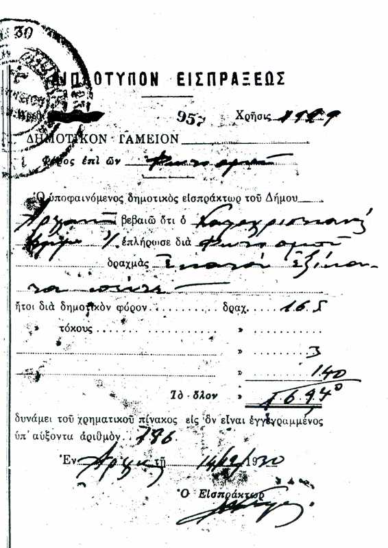 Από τους καταλόγους αυτούς έπρεπε να εισπράττει ο Δήμος, κάθε χρόνο, το ποσό των 43.000 δρχ. συνολικά. Από αυτές, 33.000 δρχ. για τέλη καθαριότητας και 10.000 δρχ. για τέλη φωτισμού. Όρισε ακόμη ότι ο βεβαιωτικός αυτός κατάλογος που θα ίσχυε και για τα επόμενα χρόνια, έπρεπε να αναθεωρείται στην αρχή του πρώτου εξαμήνου κάθε νέου έτους, προκειμένου να συμπεριλαμβάνονται και οι μεταβολές που, αναγκαστικά, θα προέκυπταν μετά την εξέταση των τυχόν αντιρρήσεων των φορολογουμένων.