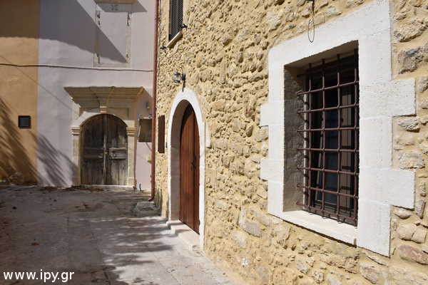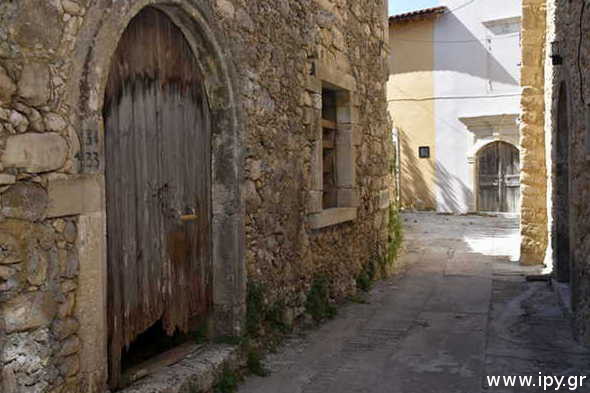 Στην κάτω πλατεία του χωριού υπάρχει η δίκλιτη εκκλησία με το βόρειο κλίτος της αφιερωμένο στην κοίμηση της Θεοτόκου (15 Αυγούστου), και το νότιο κλίτος αφιερωμένο στην μεταμόρφωση του Σωτήρος Χριστού (6 Αυγούστου). Ο ναός αυτός υπήρχε το 1381 καθώς κάνει λόγο για αυτόν ο Μπαρότσι, ο ναός για αιώνες είχε μόνο το κλίτος που ήταν αφιερωμένο στην κοίμηση της Παναγίας, το οποίο ήταν γεμάτο με σπουδαίας τέχνης αγιογραφίες, αυτές ήταν καλυμμένες με ασβέστη, και αναδείχτηκαν εκ νέου πριν περίπου 40 χρόνια. Όταν έγινε το νότιο κλίτος πριν περίπου 100 χρόνια για εξοικονόμηση χώρου, τοποθετήθηκε το τέμπλο του παλιού κλίτους στο νέο, του Σωτήρος Χριστού, ενώ το 2015-16 με την ευγενική προσφορά μίας πιστής φτιάχτηκε το νέο τέμπλο του παλιού ναού της κοιμήσεως της Θεοτόκου.