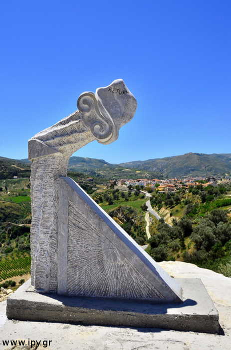 Έργο του γλύπτη Μανώλη Χαρκούτση “Return” σε μάρμαρο Γορτύνης από το Διεθνές Συμπόσιο Γλυπτικής του 2011, το οποίο πραγματοποίησε ο πολιτιστικός σύλλογος Βενεράτου. Είναι ένα έργο διαμαρτυρίας για τους αρχαιολογικούς χώρους της Ελλάδας και για τα κλεμμένα αρχαία που βρίσκονται στα μουσεία όλου του κόσμου.