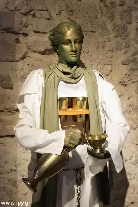Πρόκειται για ένα ανθρωποειδές ρομπότ με τη μορφή υπηρέτριας (σε φυσικό μέγεθος) που στο δεξί χέρι της κρατούσε μια οινοχόη. Όταν ο επισκέπτης τοποθετούσε έναν κρατήρα (κύπελλο) στην παλάμη του αριστερού χεριού της εκείνη αυτόματα έριχνε αρχικά οίνο και στη συνέχεια για ανάμειξη νερό στον κρατήρα ανάλογα με την επιθυμία του.