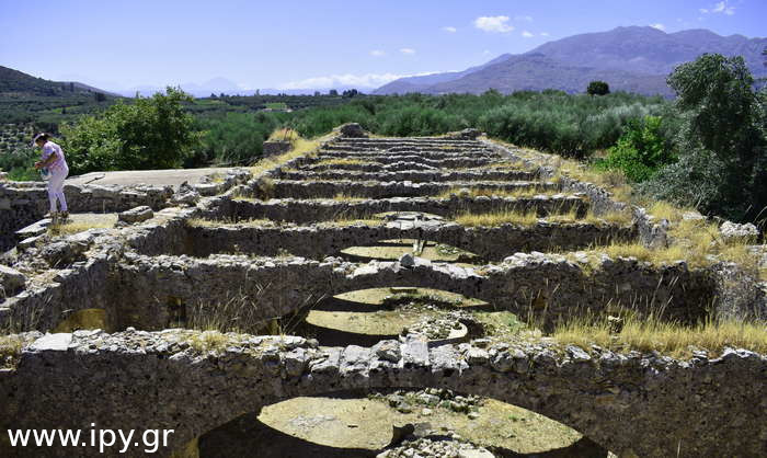 Το ελαιοτριβείο είναι μονόχωρο με επίπεδη στέγη με δυο διπλές ημικυκλικές τοξοστοιχίες. Στην ανατολική πλευρά υπήρχε μια μεγάλη εστία για τη θέρμανση του νερού και του χώρου. Το συγκρότημα κλείνει με ένα ψηλό τοίχο, που ορίζει μια κλειστή αυλή με κάποιους βοηθητικούς χώρους.