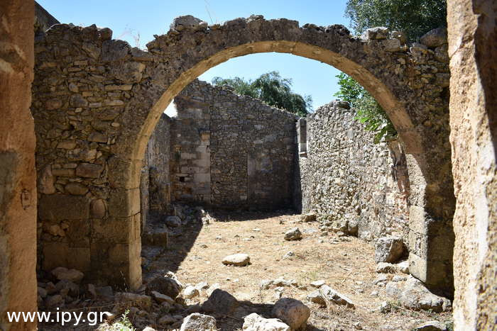 Βόρεια της έπαυλης υπάρχουν τα ερείπια μικρού ναού σε ύψος περίπου 1 μ. και πολλοί τάφοι που αποκαλύφθηκαν μετά από μικρής έκτασης ανασκαφική έρευνα από την Εφορεία Αρχαιοτήτων. Τα ερειπωμένα κτίσματα βορειοδυτικά του συγκροτήματος, ανήκαν στο παλιό χωριό.