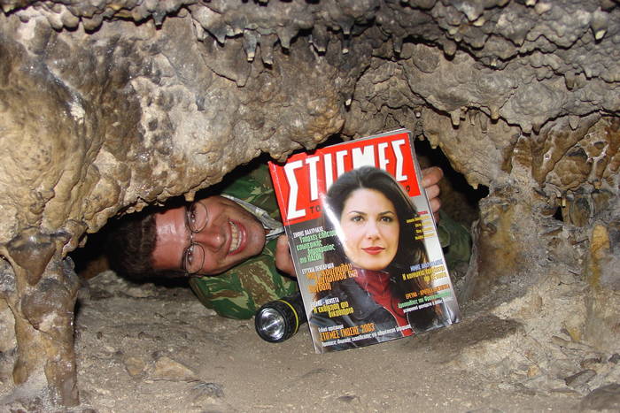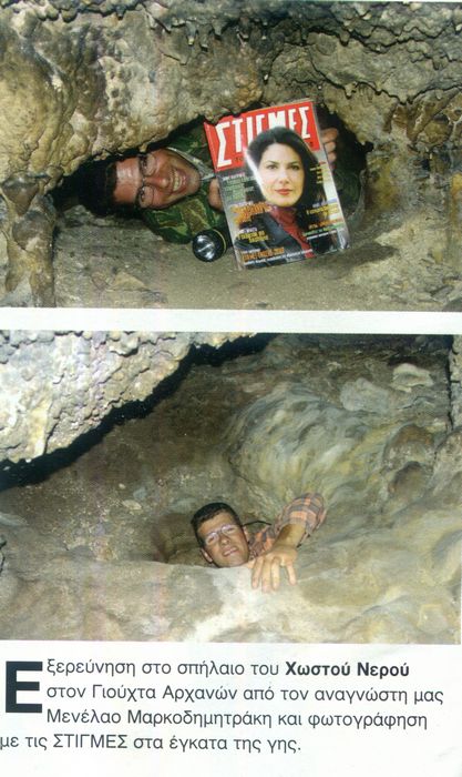 Στο σπήλαιο πήγα ξανά έπειτα από πολλά χρόνια τον Σεπτέμβρη του 2003, πήγα με τον Αδελφό μου Εμμανουήλ, με σκοπό να εξερευνήσουμε, αλλά και να θυμηθούμε ξανά το σπήλαιο από τότε που είμασταν παιδιά, τον φωτογράφισα μέσα στο σπήλαιο και στις δύο σήραγγες στα πιο στενά και απρόσιτα περάσματα, μάλιστα στείλαμε δύο από τις φωτογραφίες αυτές στο Κρητικό Περιοδικό Στιγμές και κάναμε ένα μικρό αφιέρωμα.