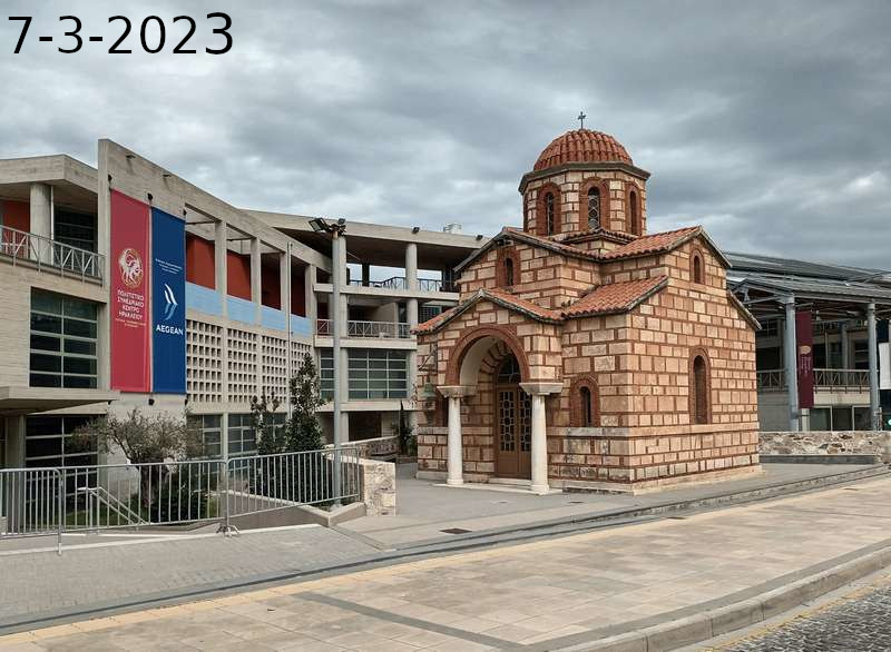 Στις παρακάτω δύο φωτογραφίες, βλέπετε τον Ιερό Ναό του Αγίου Αντρέα στο Ηράκλειο, όπως ήταν πριν κατασκευαστεί το Πολιτιστικό Κέντρο Ηρακλείου, αλλά και μετά την κατασκευή του.