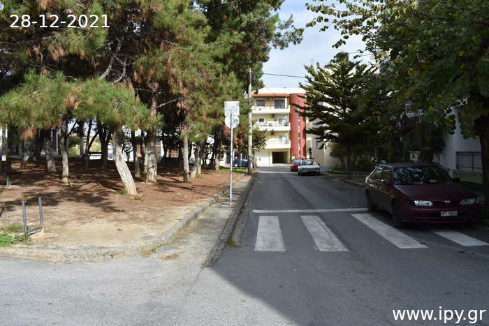 Στην συμβολή των οδών Σκεπετζή και Οικονομάκη στο Μπεντεβή υπάρχει ένα δασάκι με πεύκα, δείτε το μαζί με το φόντο 23 χρόνια μετά.