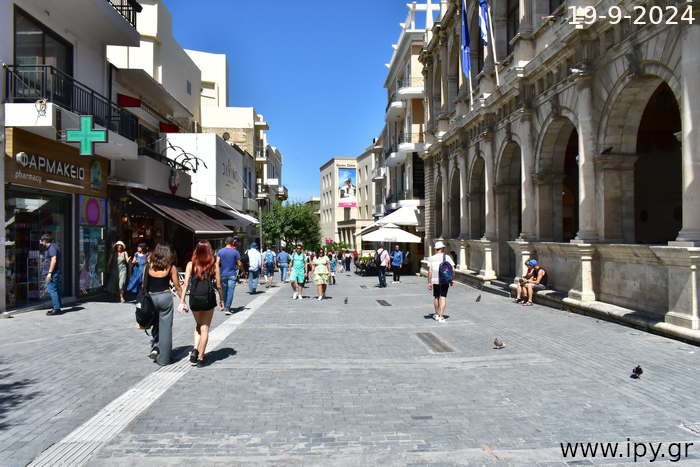 Το σημείο της οδού 25 Αυγούστου μπροστά ακριβώς από το Βενετσιάνικο κτήριο Λότζια που στεγάζει το Δημαρχείο Ηρακλείου.