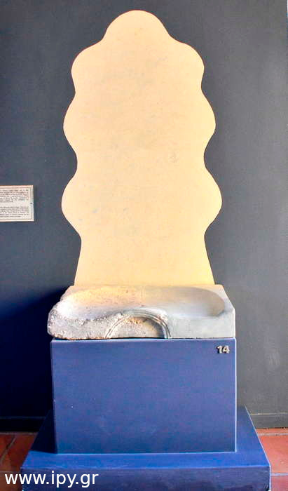 π.Χ.). Τα πήλινα πόδια του ξύλινου ξοάνου και το χάλκινο όπλο της ανθρωποθυσίας, με το έμβλημα του μειξογενούς ζώου στη λεπίδα, είναι εκμαγεία των αντικειμένων που εκτίθενται στο Μουσείο Ηρακλείου.