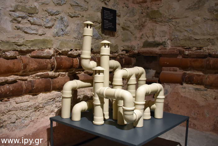 Το νερό και ο ατμός κυκλοφορούσαν στους θερμούς και χλιαρούς χώρους του λουτρού με πήλινους αγωγούς κατά μήκος των τοίχων.