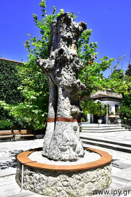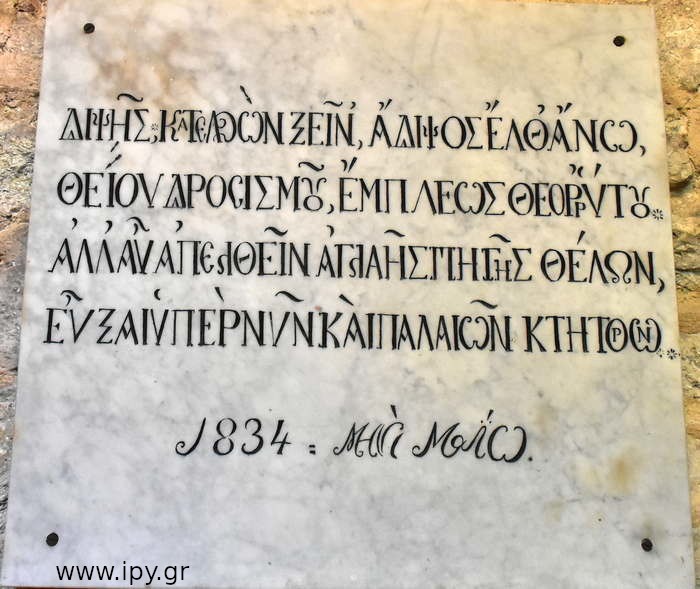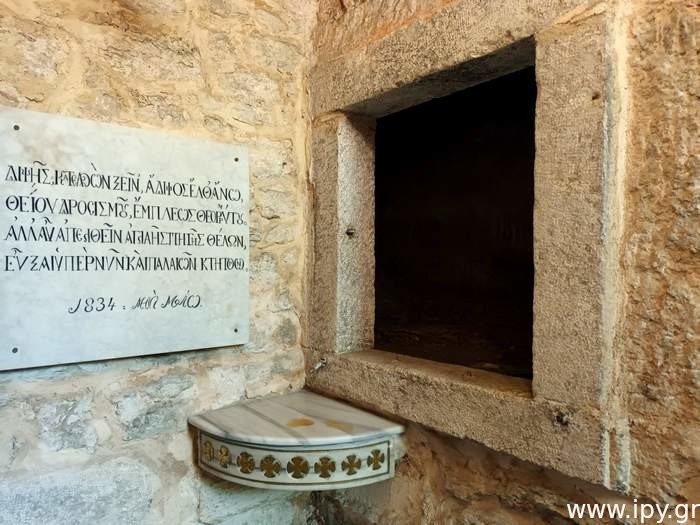 To δάπεδο της αυλής, στην είσοδο της μονής, καλύπτεται από παλαιές ταφικές πλάκες, πολλές από τις οποίες είναι επιγεγραμμένες στα Καραμανλίδικα, δηλαδή τουρκικά (κατά βάση), γραμμένα σε ελληνική γραφή, τα οποία είναι συνδεδεμένα με μία πλούσια εκδοτική παράδοση το δέκατο ένατο αιώνα. Τα Καραμανλίδικα ήταν μία διάλεκτος, ομιλούμενη από τους Καραμανλήδες η τους τουρκόφωνους ορθόδοξους χριστιανούς, οι οποίοι κατοικούσαν στις περιοχές του Καραμάν και της Καππαδοκίας της Κεντρικής Ανατολίας, κατά την οθωμανική εποχή έως και τον πρώιμο εικοστό αιώνα. Οι Καραμανλήδες ήταν απόγονοι των ελληνόφωνων Βυζαντινών.
