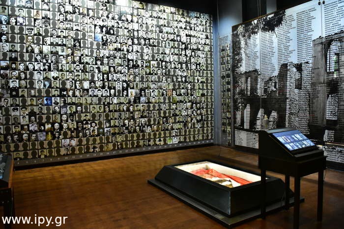 Αίθουσα 5″: Η πέμπτη και τελευταία αίθουσα-ενότητα λειτουργεί ως χώρος ιστορικής μνήμης. Το Πάνθεον των Εκτελεσθέντων και Διασωθέντων (ονόματα και φωτογραφίες), οι φωτογραφίες της Δίκης της Νυρεμβέργης και των κατεστραμμένων Καλαβρύτων, η προβολή εικόνων από την ανείπωτη τραγωδία, οι εικαστικοί πίνακες οι εμπνευσμένοι από το Καλαβρυτινό Ολοκαύτωμα και η αποκαθηλωμένη σημαία του Εθνικοσοσιαλιστικού κόμματος που βρίσκεται σε ενδοδαπέδια βιτρίνα στο κέντρο της αίθουσας, ολοκληρώνουν τη μουσειογραφική αφήγηση του Ολοκαυτώματος των Καλαβρύτων.