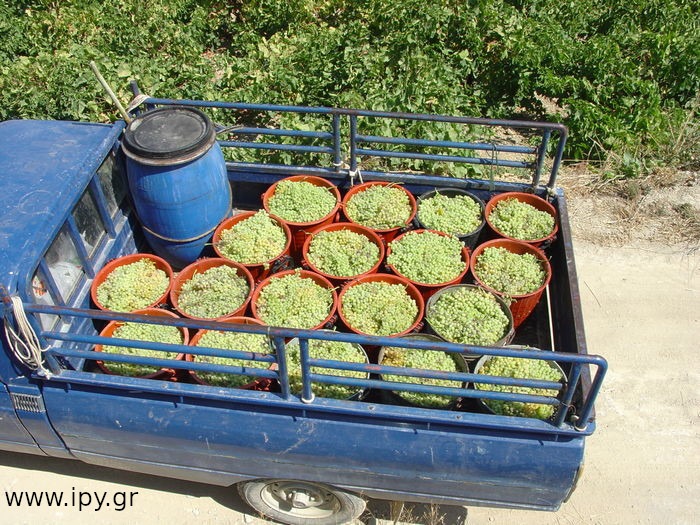 Κατά τον τρύγο, οι αγρότες τοποθετούν τα σταφύλια μέσα στα τζιγκάκια με το κοτσάνι (λίγι) προς τα πάνω. Στη συνέχεια, τα τζιγκάκια μεταφέρονται από τα καρίκια του αμπελιού είτε με τα χέρια, είτε με καρότσι, είτε –παλαιότερα– με γάιδαρο, μέχρι το σημείο που θα γίνει η διαδικασία του αλουσουδιάσματος.